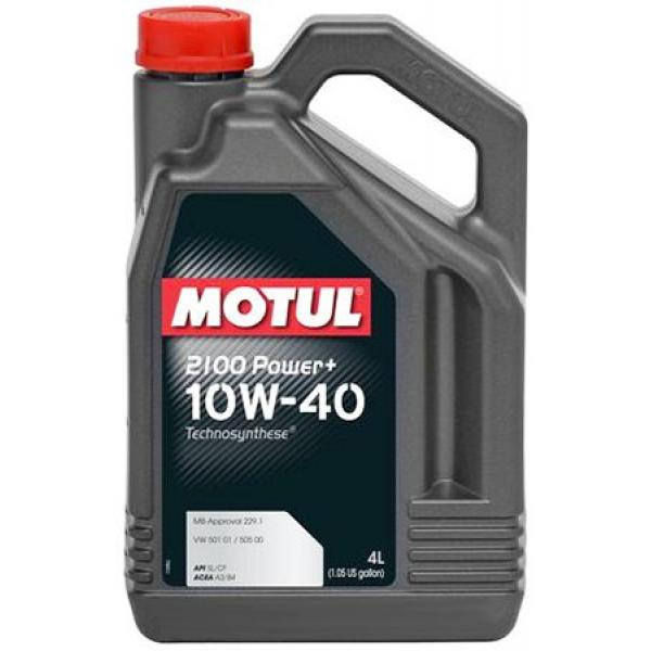 Всесезонное моторное масло для бензиновых и дизельных двигателей Motul 2100 Power+ 10W-40 Motul 2100 Power+ 10W-40 - разработано специально для мощных и самых новых автомобилей, оснащенных турбо дизельным двигателем с большим объемом и прямым впрыском, а также бензиновым двигателем с инжектором и каталитическим конвертером. Подходит для всех типов бензиновых и дизельных двигателей, работающих на освинцованном или не освинцованном бензине, дизельном топливе или сжиженном нефтяном газе. Спецификации и одобрения Моторное масло Motul 2100 Power+ 10W-40 превосходит требования следующих промышленных стандартов: ACEA A3 / B4 API SL / CF VW 501 01 и 505 00 MB 229.1