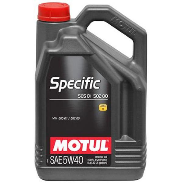 Motul Specific VW 505 01\502 00 5W-40 - специально разработано для новых автомобилей группы VAG (VW, Audi, Skoda, Seat), с фиксированными межсменными (15 000 км. в Европе), оснащенных TDI или турбодизельным двигателем VW с насос-форсункой или без таковой. Продукт обладает противоокислительными, антикоррозийными, противоизносными и антипенными свойствами. Синтетическая базовая основа обеспечивает великолепные смазывающие свойства, чтобы выдержать дополнительную нагрузку в насос-форсунке, снизить трение и обеспечить устойчивость к высоким температурам в современном двигателе. Предотвращает износ клапанного механизма, увеличивая надежность двигателя. Технология сниженного содержания сульфатной золы, фосфора и серы (Mid SAPS) лучше подходит для автомобилей последнего поколения, оснащенных каталитическим конвертором.